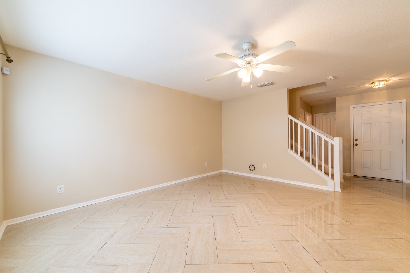 Inside, the main level boasts elegant herringbone tile flooring, adding a touch of sophistication to the living space. All three bedrooms are situated on the second floor, providing privacy and comfort. The thoughtfully designed layout combines style and functionality, making it perfect for modern living.